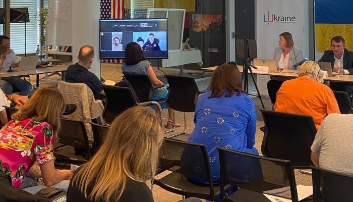 Artyom Yukhin, PDG d’Artec 3D (à gauche), et Ruslan Horyachenko, chef des droits de l’homme de la police nationale ukrainienne (à droite), lors d’une conférence de presse. (crédits photo : Artec 3D).